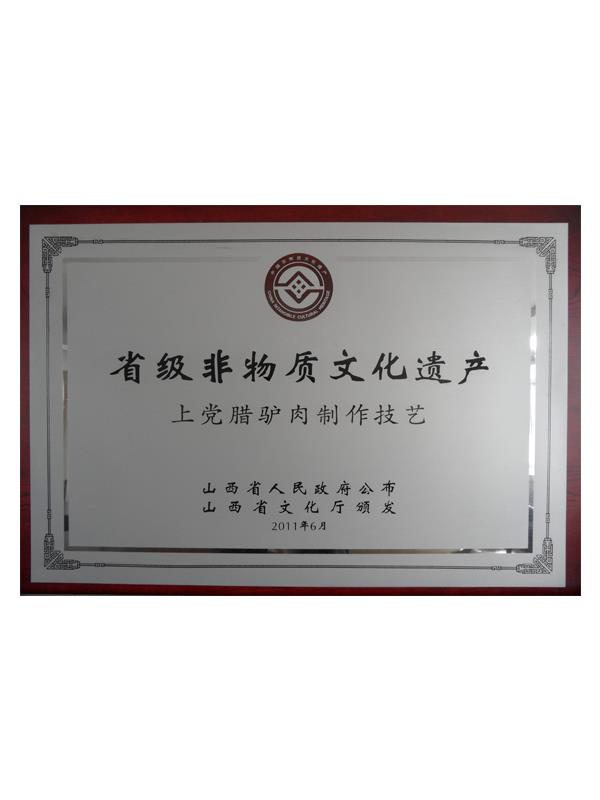《本草綱目》第五十卷記載有:“驢肉味甘、無毒、解心煩、止風(fēng)狂、能安心氣、補(bǔ)血益氣、治遠(yuǎn)年勞損”的作用,尤其對(duì)失眠、健忘、眩暈、營養(yǎng)不良、貧血癥有獨(dú)特療效。上黨臘驢肉是山西長(zhǎng)治市的漢族傳統(tǒng)名吃,其肉質(zhì)肥而不膩、瘦而不柴、香味四溢、回味無窮。早在明代,臘驢肉就已馳名于上黨和晉南地區(qū),產(chǎn)品遠(yuǎn)銷北京、天津、南京等南北名城。臘驢肉與當(dāng)?shù)氐臎龇邸⑺只馃环Q為潞安府(長(zhǎng)治古稱潞安府)三寶。